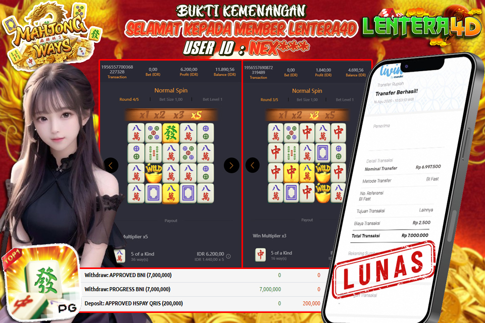 Setiap hari, member Lentera4D berhasil meraih jackpot besar dari berbagai provider slot ternama yang kami sediakan, seperti Pragmatic Play, Habanero, PG Soft, dan masih banyak lagi. Kami secara rutin menampilkan bukti screenshot atau rekapan kemenangan yang berhasil diraih, mulai dari kemenangan ratusan ribu hingga puluhan juta rupiah. Semua slip kemenangan ini kami hadirkan untuk membuktikan bahwa di Lentera4D, peluang menang itu nyata.