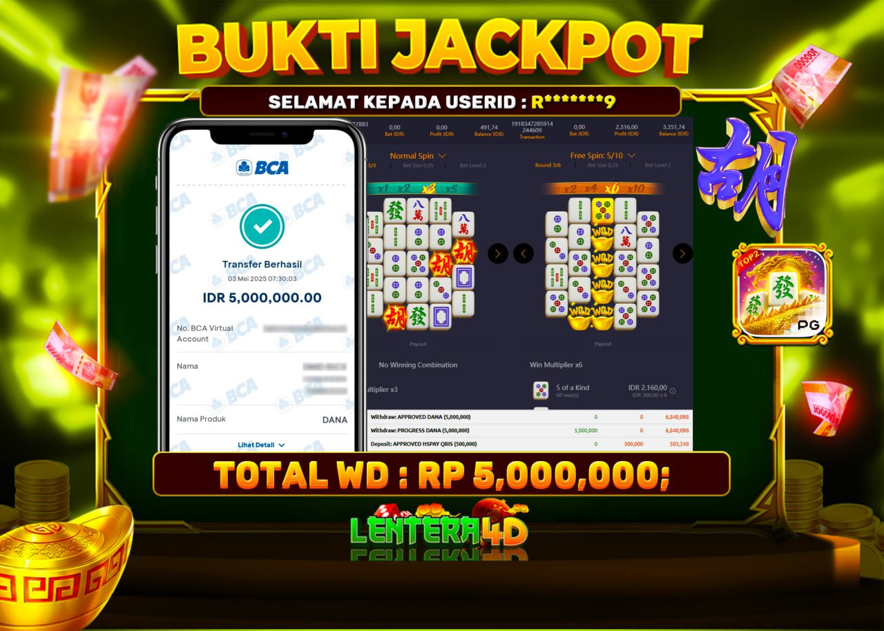 Setiap hari, member Lentera4D berhasil meraih jackpot besar dari berbagai provider slot ternama yang kami sediakan, seperti Pragmatic Play, Habanero, PG Soft, dan masih banyak lagi. Kami secara rutin menampilkan bukti screenshot atau rekapan kemenangan yang berhasil diraih, mulai dari kemenangan ratusan ribu hingga puluhan juta rupiah. Semua slip kemenangan ini kami hadirkan untuk membuktikan bahwa di Lentera4D, peluang menang itu nyata.