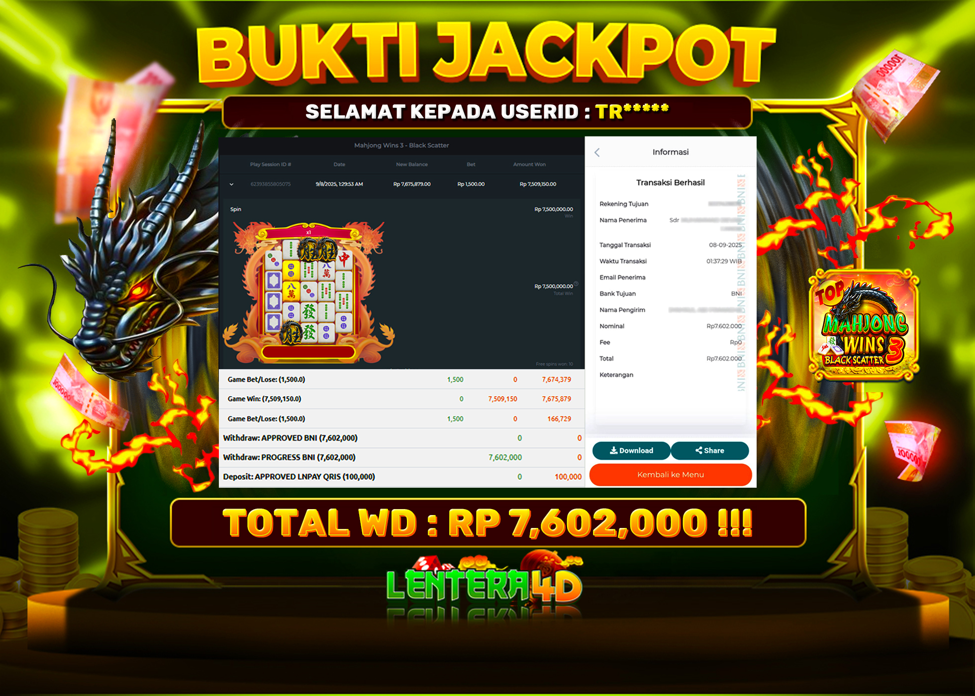 TOTAL KEMENANGAN : Rp 7.602.000,-