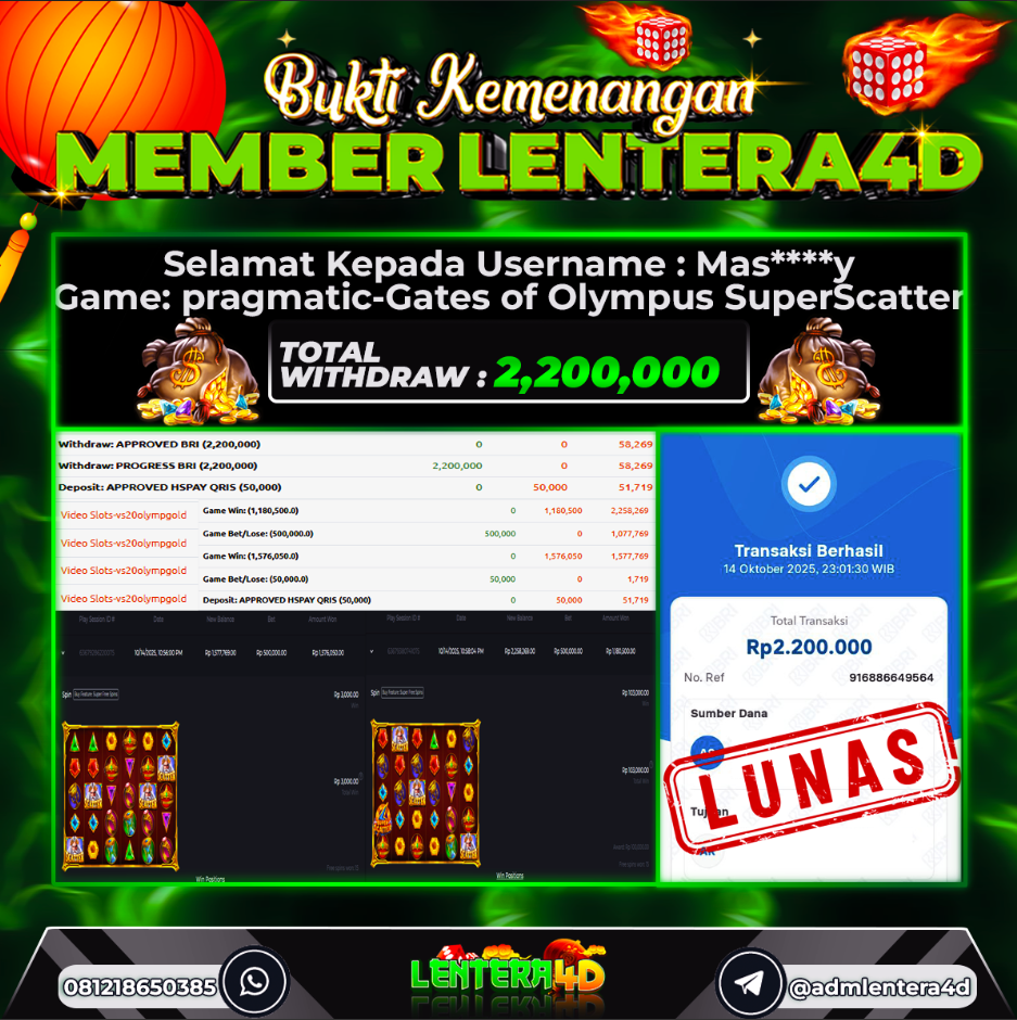 Satu lagi Bukti JP dan Pembarayan Sah Dan Dapat Dipertanggung Jawabkan, WD Berapapun Pasti Dibayar Lunas Hanya di Situs LENTERA 4D. Hati Hati Kepada Pihak Pihak Yang Mengatas namakan Pihak LENTERA4D Untuk Melakukan Penipuan.