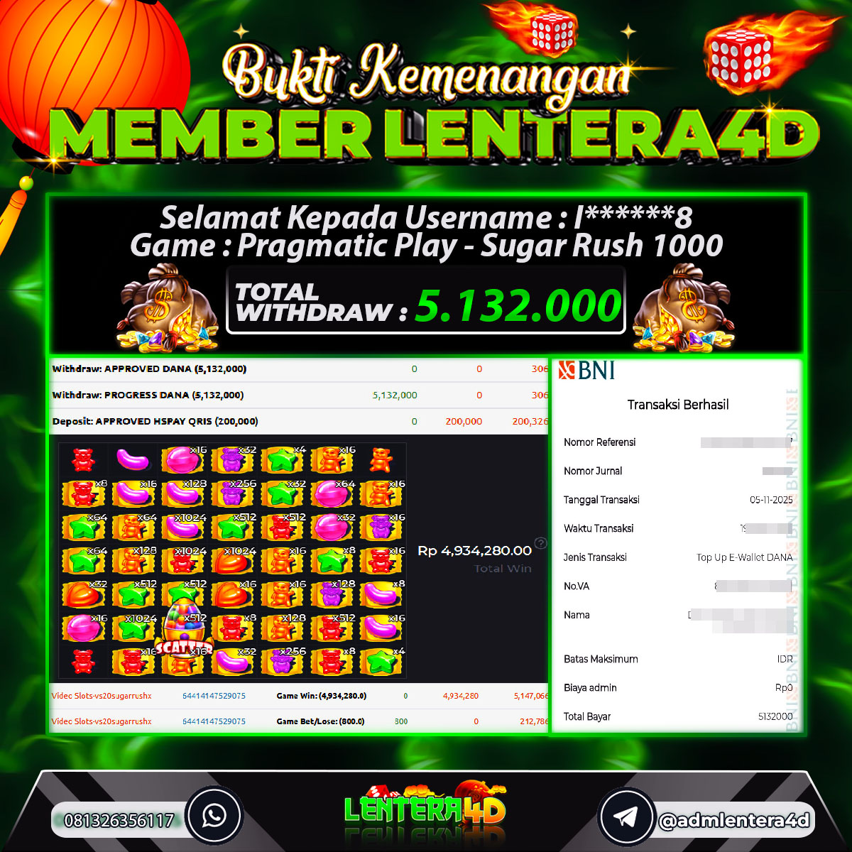 JACKPOT SUGAR RUSH 1000 05 NOVEMBER 2025, Jackpot Slot Gacor, Kemenangan Slot, Bukti Kemenangan Slot, Kemenangan Slot Pragmatic Play, Menang Slot online, Slot Gacor, Situs Aman Terpercaya, WD Berapapun Pasti DI Bayar Tuntas, Maxwin Slot Online.